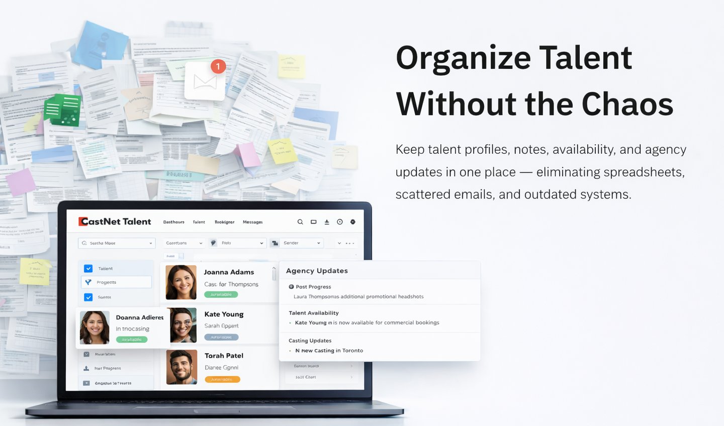 CastNet Talent helps agencies organize talent, collaborate with other professionals, and stay informed about opportunities across the industry.